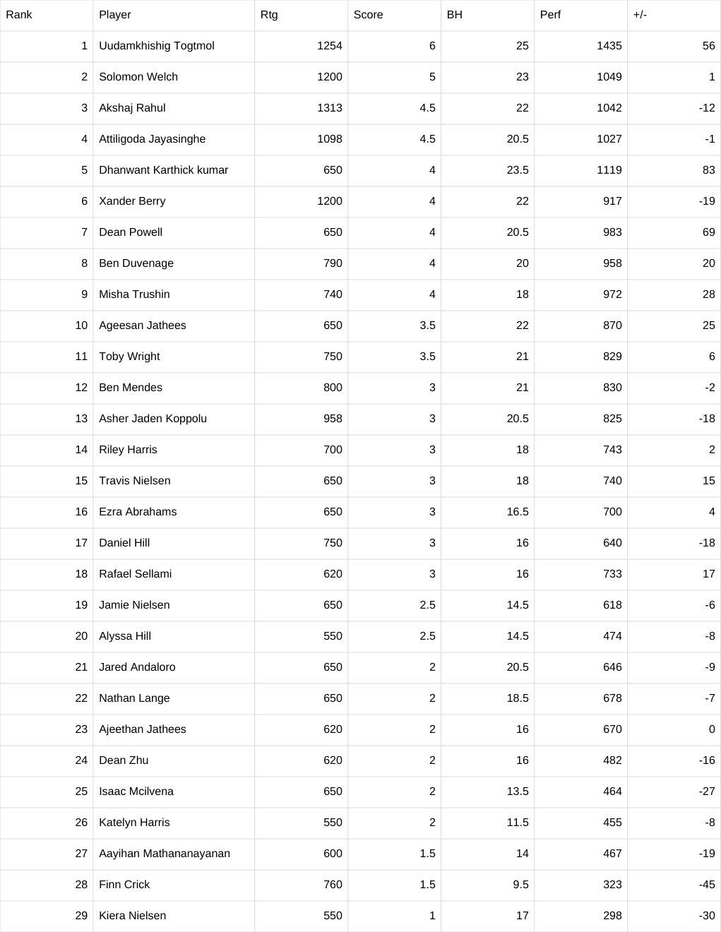 July 13th The tournament results: